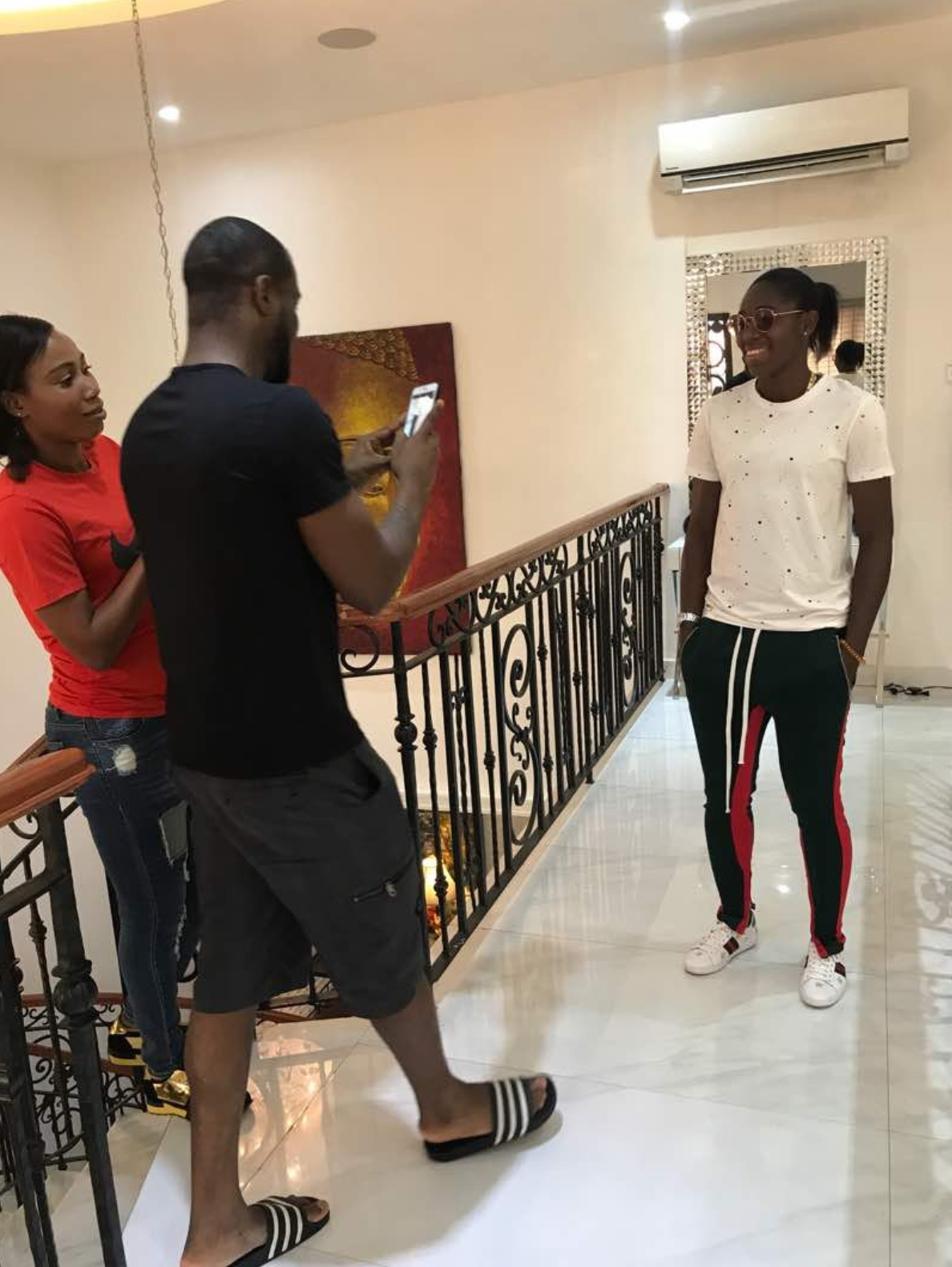 Nigerian artiste Paul Okoye had a special visitor at his mansion today, it was Super Falcon star and female African Player of the Year, Asisat Oshoala alongside Onome Ebi