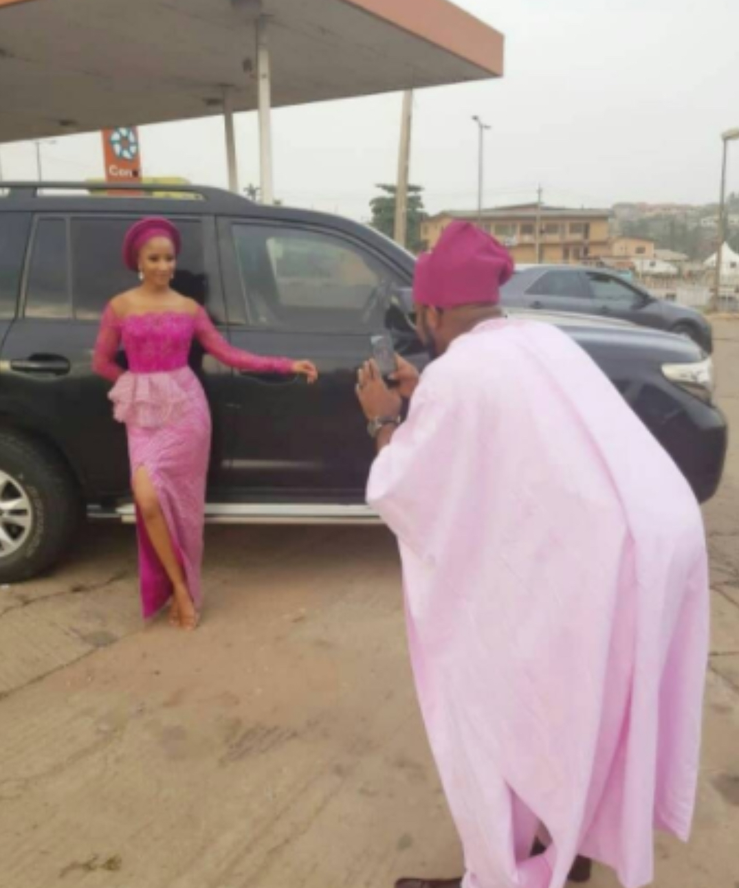 Nigerian artiste and singer Banky W and his beautiful wife, Adesua Etomi, looked absolutely gorgeous as they headed out for Gabriel Afolayan’s wedding in Ibadan. Check out the pictures they shared below: