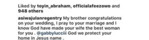 In his post Lanre Gentry had written “My brother, congratulations on your wedding. I pray for your marriage and I know God has made your wife the best not the prostitute that will pretend as one! Once again, congratulations!”