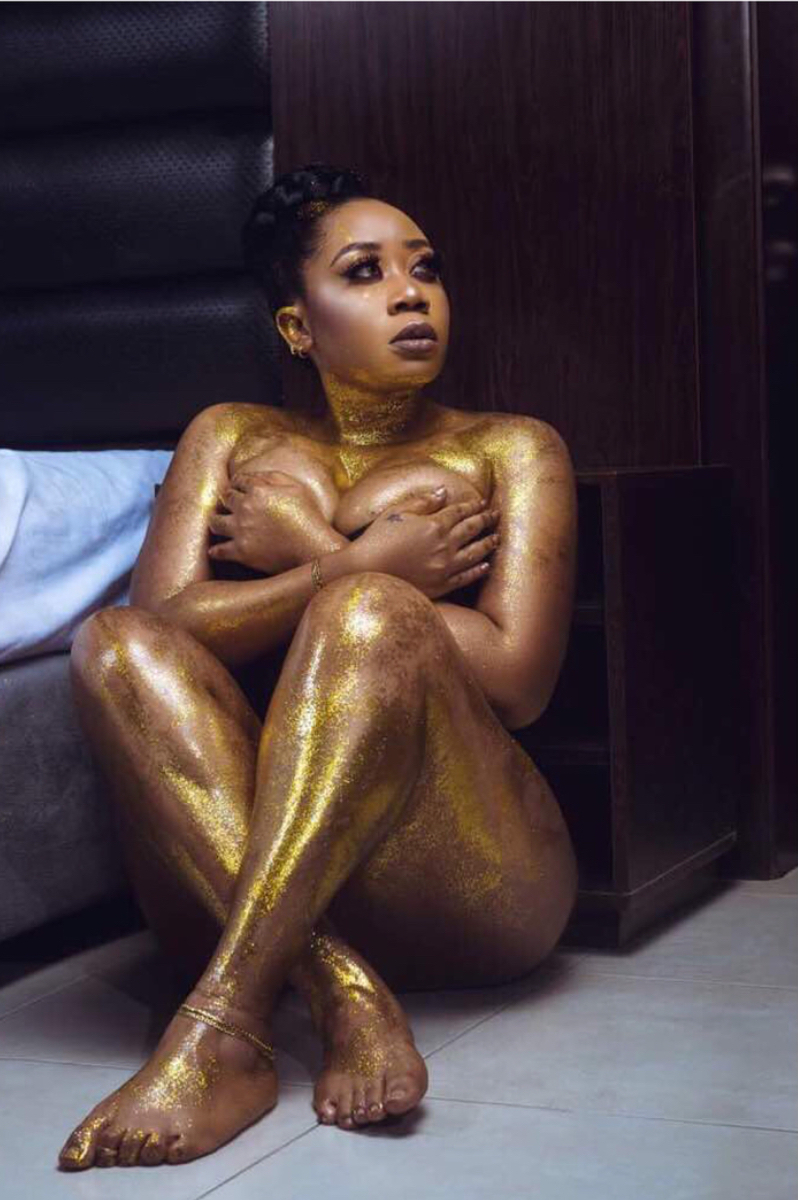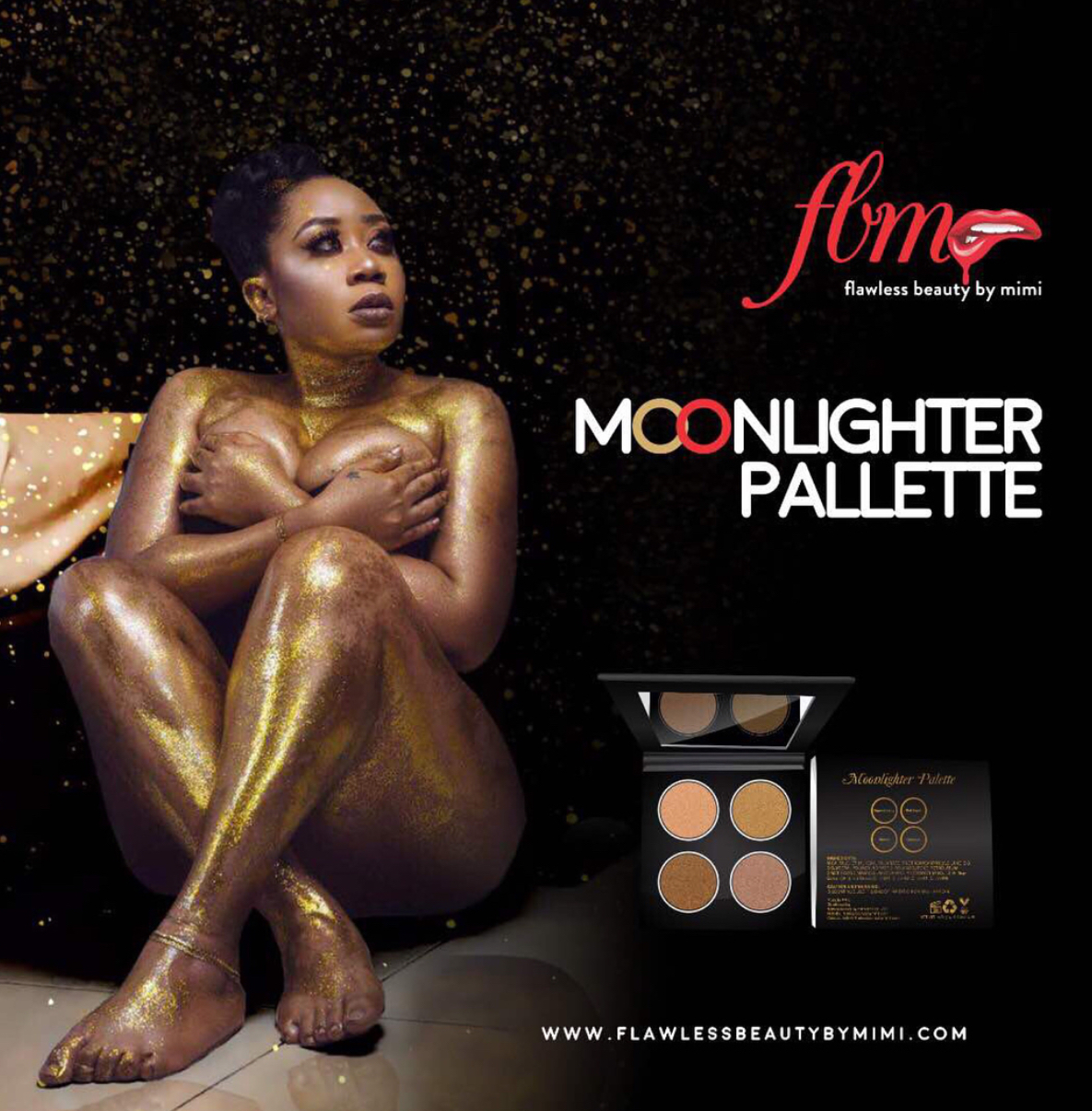 Nollywood actress Moyo Lawal, laid her nude body bare for new makeup line, Flawless beauty by Mimi products, ‘Moonlighter pallette’