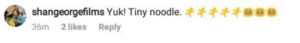 She left a comment on one of the blogs that shared the news, she said the following: ‘yuk! Tiny noodle.’