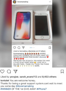 Tonto Dikeh, took to her social media page to share a picture of the phone she was giving away and posted the following caption below: