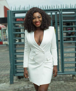 Nollywood actress Yvonne Jegede, shared a picture of herself wearing a short white blazer dress, which exposed her ample bosom.